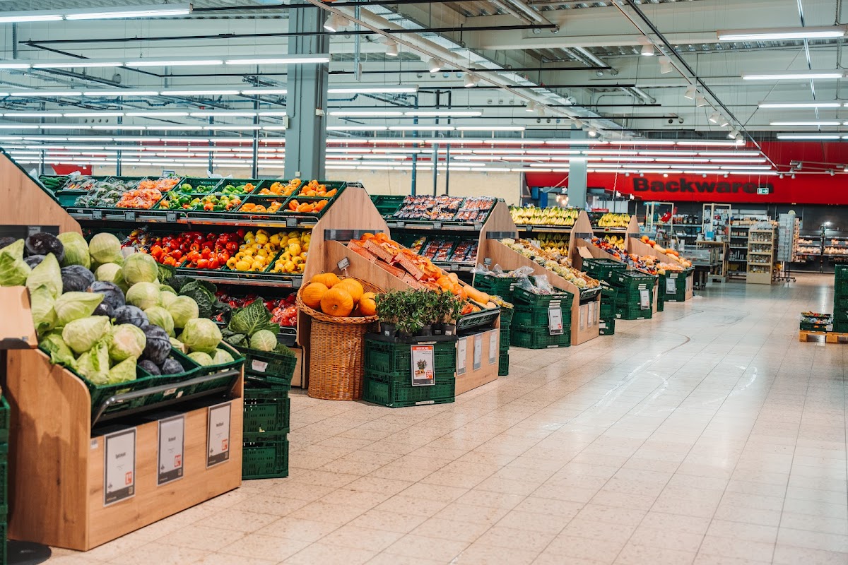 Groß, recht gut sortiert, ausländische Punkte (Genuss-/Lebensmittel) sind gesondert und zahlreich vorhanden. Die Preise sind wie bei allen Discountern und man muss auch hier genau hinschauen. Die Obst-Gemüseabteilung ist sehr gut und zu empfehlen. Das Personal ist sachkundig und hilfsbereit. Zusätzlich und gesondert sind im Center ein Bäcker, Apotheke, ein Bistro, ein Eis-Caffe, Fisch-Bistro, MacGeiz und mehr. Kann man ganz gut einkaufen. Zumal es hier auch viele Produkte gibt, die es in anderen Supermärkten nicht gibt.