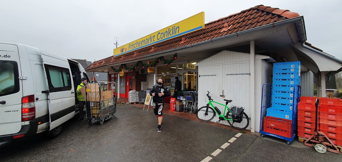Ich habe zum ersten Mal bestellt und nach Heide liefern lassen. Ich war überrascht über so viel Freundlichkeit und den guten Service. Auch telefonische Bestellung war sehr freundlich und unkompliziert. Ich kann Frischemarkt Conklin bestens empfehlen. Das was man braucht bekommt man auch. An den Auslieferungsfahrer meinen besten Dank , der die ganzen Mineralwasserkästen ins erste Obergeschoss getragen hat. Ich werde hier weiter kaufen bei Conklin.